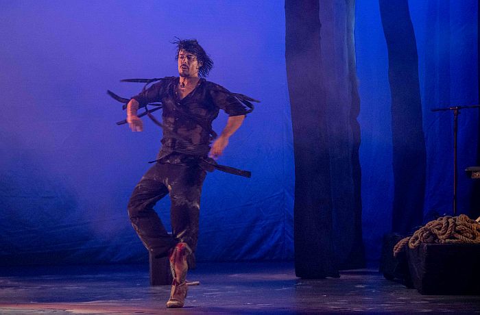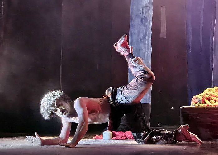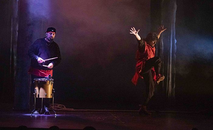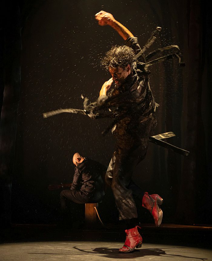 La escenografía se presenta como un bosque en el que se adentran los personajes escénicos (Carmona y Masaedo), una alegoría de miedos y temores en la que se funden en un ejercicio expresivo que se transforma en energía, a veces cercana a lo ritual o lo tribal con el cuerpo embadurnado de polvo, o en un alarde de técnica en el taconeo voraz y veloz, a la altura de pocos genios del baile. No es extraño pues, ni los Max ni otros galardones como el ‘Premio Benois de la Danse’ o el ‘Premio Nacional de Danza’ que acumula en su historial Jesús Carmona.