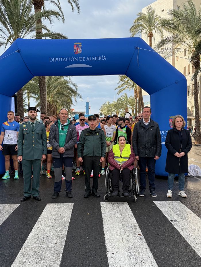 A las 10:00 horas ha salido la carrera absoluta e inclusiva, seguida de la infantil. En la inauguración han estado presentes el concejal de Ciudad Activa, Movilidad Urbana y Deporte, Antonio Casimiro, la diputada de Deportes, Vida Saludable y Juventud de la Diputación Provincial, María Luisa Cruz, el subdelegado del Gobierno de España, José María Martín, y el coronel jefe de la Comandancia de Almería, José Antonio Carvajal, Antes del inicio se ha rendido homenaje al Guardia Civil Francisco Javier Rodríguez Martínez, fallecido ayer.