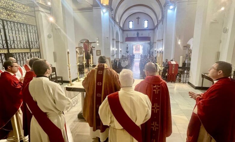 “Damos gracias a Dios por tantos testigos que dieron su vida por Él, especialmente por los beatos mártires —una laica y cuatro sacerdotes de Adra— que fortalecen nuestra fe.” Con estas palabras comenzó la monición de entrada de la celebración de la jornada martirial que tuvo lugar en la Parroquia de la Inmaculada Concepción de Adra, donde el presbiterio diocesano y la comunidad se reunieron para honrar la memoria de sus mártires y renovar su testimonio cristiano.
