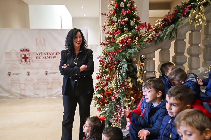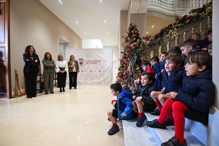El Ayuntamiento de Almería ha recibido este jueves la visita de más de una treintena de alumnos de Educación Infantil del Colegio Altaduna – Saladares. La alcaldesa de la ciudad, María del Mar Vázquez, y la concejala de Presidencia, Innovación y Fondos Europeos, Amalia Martín, han dado la bienvenida a los escolares en la escalinata principal de las Casas Consistoriales.