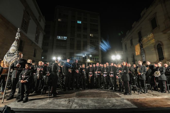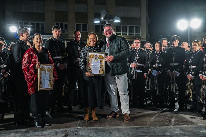 Sobre el escenario, Nieto ha subrayado que “el Ayuntamiento siempre va a estar al lado de nuestras bandas y de nuestras hermandades, tenemos una Semana Santa de Interés Turístico Nacional y unas formaciones musicales de primerísimo nivel que hacen que esta fiesta sea única y tenga esa catalogación”.
