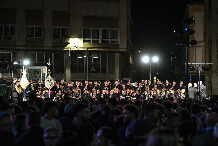 El certamen ha proseguido con la actuación de la Banda de Cornetas y Tambores Cautivo de la capital malagueña. Esta formación acompañó, durante varios años, a la Hermandad de la Santa Cena de Almería. La formación malacitana ha interpretado las marchas ‘Tu recuerdo’, ‘Ante ti, Señor’, ‘Señor de Málaga’, ‘He aquí el Señor’ y ‘Sancta Trinitas’. Acto seguido ha sido el turno de una de las agrupaciones musicales más conocidas del panorama nacional. Desde Linares, la Agrupación Musical Nuestro Padre Jesús de la Pasión ha tocado las marchas ‘Llegó tu Hora’, ‘Al Señor del Prendimiento’, ‘Al que yo Besé’, ‘Al oír el Canto’ y ‘Flagellatio’. Esta formación ha acompañado, durante más de dos décadas, al paso de misterio de la Hermandad del Prendimiento, en la capital almeriense. También puso sus notas al misterio de la Santa Cena en la Procesión Magna de Almería del año 2022. Por último, la Banda de Cornetas y Tambores Nuestra Señora del Rosario, también de Linares, ha llenado de notas cofrades la Plaza Pablo Cazard. Esta formación jienense, que en su día acompañó a la Hermandad de la Santa Cena, ha interpretado las marchas ‘Este es mi Cuerpo’, ‘Vida’, ‘Tu Divina Humildad’, ‘El Compás del Soberano’ Y ‘La Orden de Betania’.