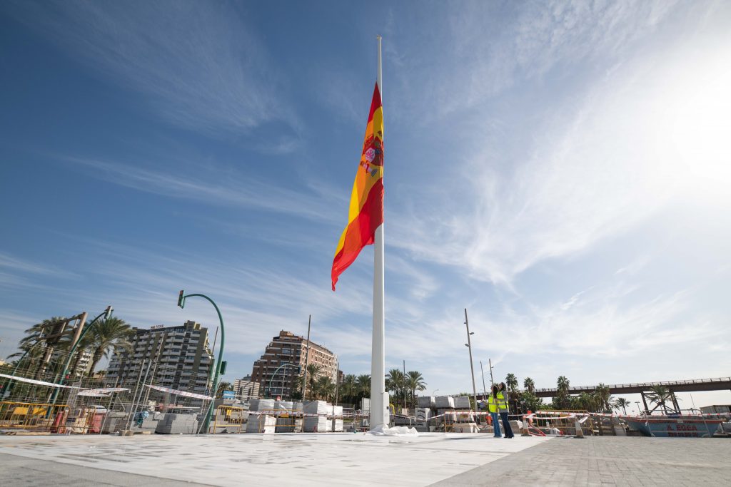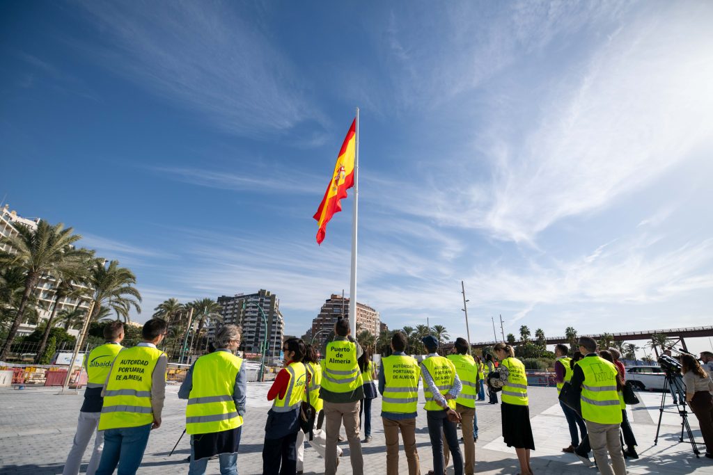 El Puerto de Almería abrirá el próximo 5 de diciembre las dos primeras hectáreas del proyecto de integración Puerto-Ciudad, según han anunciado la alcaldesa de Almería, María del Mar Vázquez, y la presidenta de la Autoridad Portuaria de Almería (APA), Rosario Soto, durante la prueba de izado de la bandera de España que presidirá la entrada al Muelle de Levante y Ribera I.