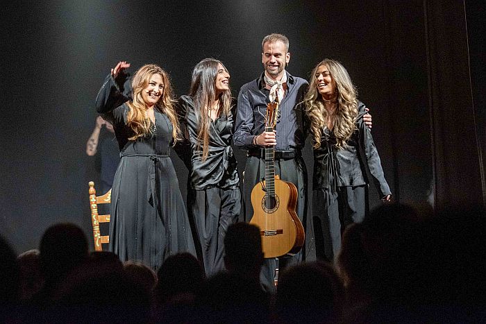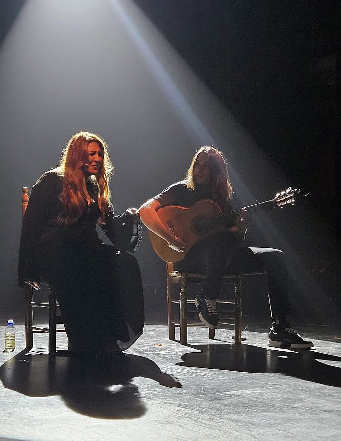 Siguió por malagueñas en ‘A mi pare Manuel’, ofreció una preciosista “soleá moderna, con letra de mi tío Sorderita del que me encanta su sensibilidad” en ‘Inaccesible’ y bordó a la perfección los tientos ‘Andando por tu cuerpo’, brillando por igual en el soniquete a compás como en las partes bregadas. Antes de cruzar el ecuador del recital, se sumaron al escenario “parte de mis niñas”, con Reyes y Juana a las palmas en una tanda tangos.