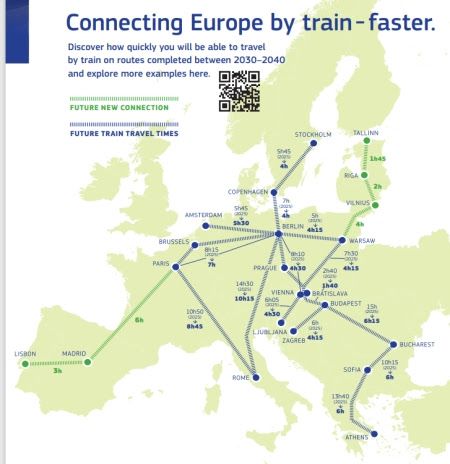 Sobre la base de la Red Transeuropea de Transporte (RTE-T), el plan prevé conectar los nodos principales a velocidades de 200 km/h y superiores. Los pasajeros podrán viajar de Berlín a Copenhague en cuatro horas en lugar de las siete actuales, y de Sofía a Atenas en seis horas en lugar de las actuales 13 horas y 40 minutos. Los nuevos enlaces transfronterizos también permitirán trayectos más rápidos y sencillos (por ejemplo, de París a Lisboa a través de Madrid), y una mejor conectividad entre las capitales bálticas.