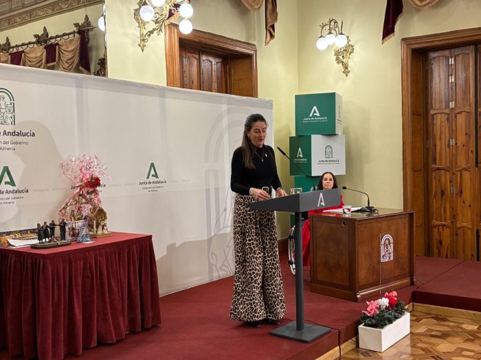 La delegada del Gobierno de la Junta de Andalucía en Almería, Aránzazu Martín ha presidido el XVI Pregón de la Navidad de la Asociación Almeriense de Amigos del Belén. Una cita que ha tenido lugar en el Salón Noble de la Delegación del Gobierno en Almería, y que ha contado con una pregonera muy especial, la periodista de Canal Sur, María Jesús Recio, gran amante de la Navidad.