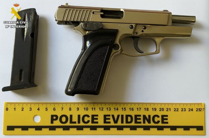 Al percatarse de que su presencia había sido descubierta, el presunto autor se dirigió hacia el vecino empuñando un arma de fogueo modificada y funcional, apuntándole y profiriendo amenazas, todo ello en presencia de la esposa y el hijo del testigo. La actitud cesó cuando llego el propietario de la finca, momento en el que el autor abandonó la zona en un vehículo cargado con el material sustraído.