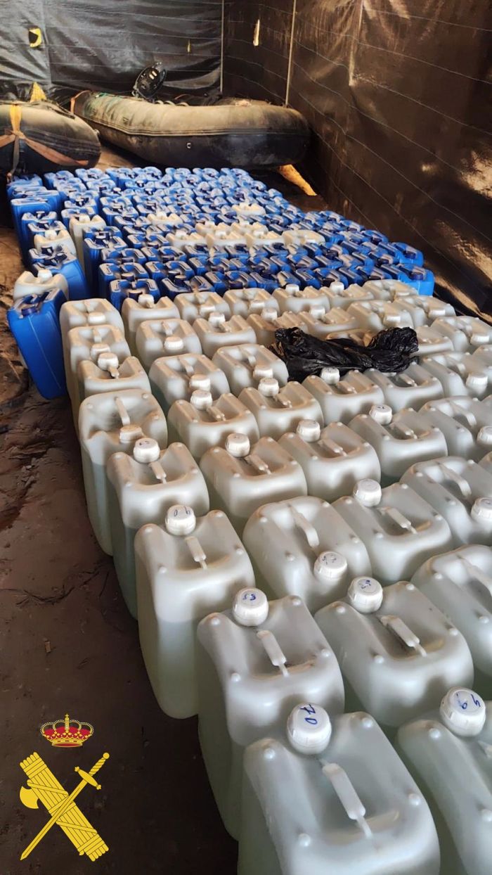 La Guardia Civil de la Comandancia de Almería,ha incautado más de 10.000 litros de gasolina engarrafas y almacenada sin las medidas de seguridad necesarias para esas cantidades de forma conjunta, en condiciones deficitarias, y que pueden verse afectadas por temperaturas que pueden superar los 40 grados. Las actuaciones, enmarcadas en el dispositivo de lucha contra el narcotráfico en el litoral almeriense y otros tráficos ilícitos, se ha saldado con la detención de dos varones de 28 y 30 años como presuntos autores de un delito de riesgo contra la seguridad colectiva. La investigación continúa abierta.