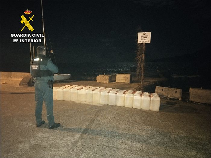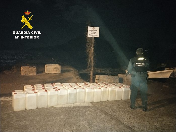 El trabajo permanente de la Guardia Civil de vigilancia en la costa ha permitido detectar distintos puntos utilizados para el abastecimiento de combustible. En la madrugada del 3 de marzo, donde agentes de la Guardia Civil localizaron en La Isleta del Moro (Níjar) más de 1.300 litros de gasolina preparados para su suministro a estas embarcaciones.