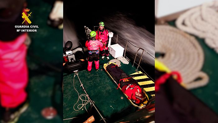 Sobre las 01:30 horas la tripulación de la embarcación Río Nacimiento, junto con el personal del GREIM regresan al lugar y logran rescatar, de una manera segura, a la persona accidentada, siendo esta desplazada hasta el puerto de San José donde es recogida sobre las 02:30 horas por una ambulancia y proceder a su traslado al Hospital Universitario Torrecardenas de Almería.