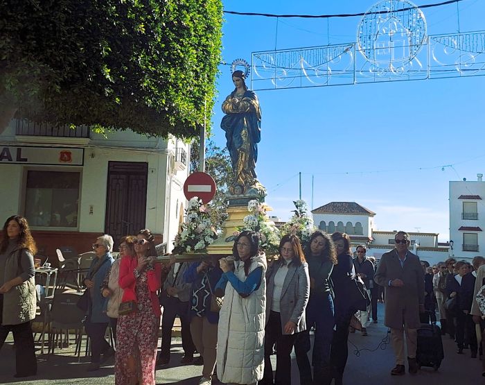 La procesión de la Inmaculada Concepción cuenta con una extensa trayectoria en la localidad que se remonta a la existencia de las denominadas “Hijas de María”, y se celebra con especial dedicación al tratarse de la patrona de España, un hecho que cada año reúne a vecinos, devotos y visitantes en torno a una advocación mariana profundamente venerada. Las calles, acogieron con emoción el paso de la imagen, que fue recibiendo muestras de respeto en distintos puntos del recorrido.