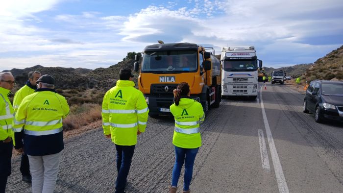 La delegada territorial de Fomento, Articulación del Territorio y Vivienda, Dolores Martínez ha realizado una visita a las obras de rehabilitación de firme que la Junta de Andalucía ha ejecutado en las carreteras dentro del Programa Anual de Inversiones en Conservación de Carreteras en la provincia de Almería.