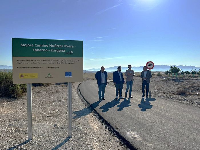 En Zurgena, en concreto, la Consejería ha destinado casi 482.000 euros a la mejora de caminos rurales. En el camino de Los Llanos del Peral se han invertido 356.936 euros para actuar en 3,5 kilómetros con reposición del firme, drenajes y señalización, mientras que en el camino Huércal Overa–Taberno–Zurgena se han invertido 124.999 euros en el refuerzo de la base y una nueva capa de rodadura asfáltica de 5 centímetros en 2,5 kilómetros. Ambas actuaciones ya están finalizadas y recepcionadas.