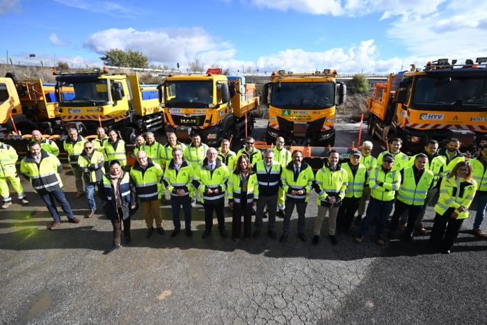 Rocío Díaz ha presentado el plan en Granada, la provincia con mayor afección por la nieve y donde se despliega un mayor número de personal y maquinaria. Así, ha destacado que, en caso de nieve generalizada, se cuenta con 160 personas y cerca de 60 vehículos, entre los que se incluyen 23 equipos quitanieves –20 de empuje y tres dinámicos–; 13 retroexcavadoras con palas mixtas y más 21 vehículos ligeros. Además, hay repartidos 20 depósitos de sal con 4.005 toneladas.