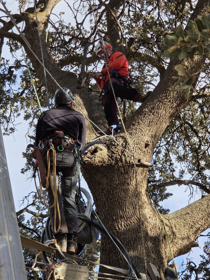 La Consejería de Sostenibilidad y Medio Ambiente instala un nuevo anclaje estático en la copa del árbol, declarado Monumento Natural