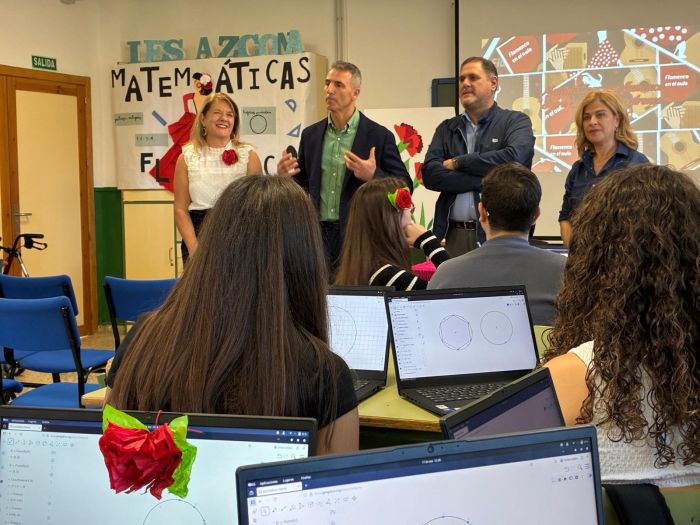 Con motivo de la conmemoración del Día Internacional del Flamenco en los centros educativos, el delegado de Desarrollo Educativo y FP de la Junta de Andalucía, Francisco Alonso Martínez, ha visitado el IES Azcona, que ha sido reconocido por la Consejería de Desarrollo Educativo y FP en la XI edición de los premios ‘Flamenco en el Aula’ por el desarrollo del proyecto de elaboración de materiales curriculares ‘Matemáticas con flamenco: entre compases y patrones’.