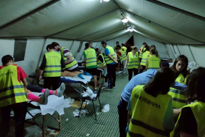 Concretamente, los de Enfermería y Medicina prestaron asistencia en el hospital de campaña, y los estudiantes y profesorado de Fisioterapia aplicaron tratamientos en problemas musculares y articulares en una tienda de campaña, así como en varios puntos de la carrera.