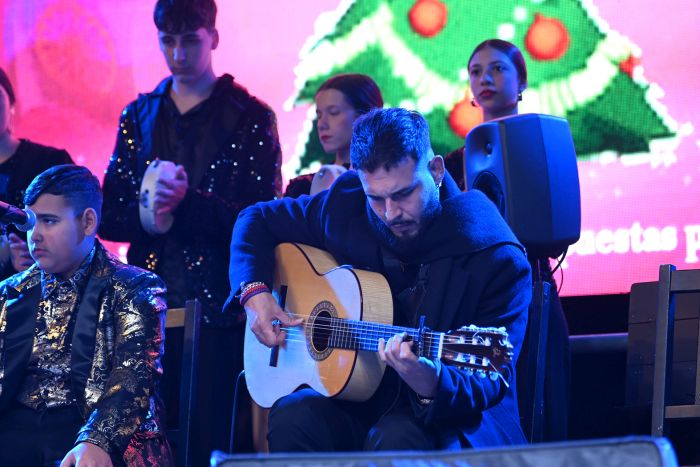 El grupo de Antonio García de Quero fue el primero en actuar con Nono Heredia al baile, Santiago Fernández y María del Molinero al cante, Johny Cortés a la percusión y el propio Antonio a la guitarra, con la colaboración del alumnado de la academia de Inés de Inés. Villancicos y aguilandos propios de Almería y provincia se mezclaron con otros populares como ‘Carita divina’, ‘La Virgen María’, ‘Los campanilleros’ o ‘Villancico del Gloria’.
