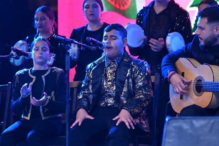 Por su parte, Chanqueños Pa’ Belén, capitaneados siempre por el cante de Cristo Heredia, Antonio El Genial, Edu García y Aquilino García, ofrecieron su habitual dosis de fiesta y conjunción de voces con temas propios como ‘Ya suenan villancicos’, ‘Su mirada’, ‘Los Reyes de Oriente’, ‘La Cuna del Mesías’ o ‘Llenos de luz’, con habituales del repertorio flamenco propio de estas fechas, con la colaboración de alumnado de la academia de Ana Alonso.
