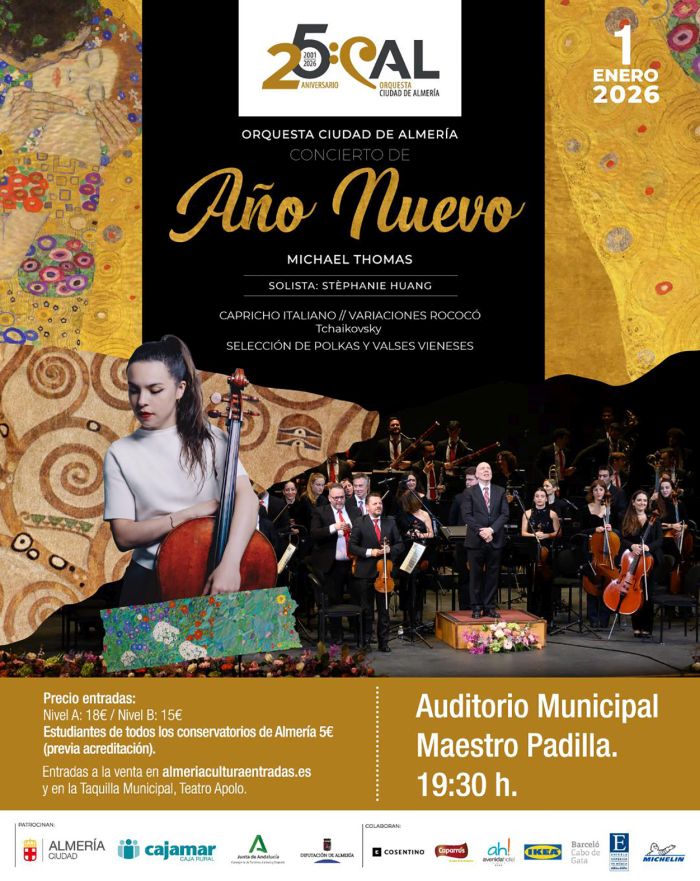 Tras conquistar una vez más al público con su excelsa interpretación de ‘El Mesías’ como preludio a la Nochebuena, la OCAL ha vuelto a trabajar con ahínco en la confección de un repertorio que hará que el primer día de 2026 la ciudad almeriense ‘se traslade’ al encanto del concierto de Año Nuevo en Viena. Contará para ello con la dirección de Michael Thomas y la participación de la Solista de violonchelo Stéphanie Huang.