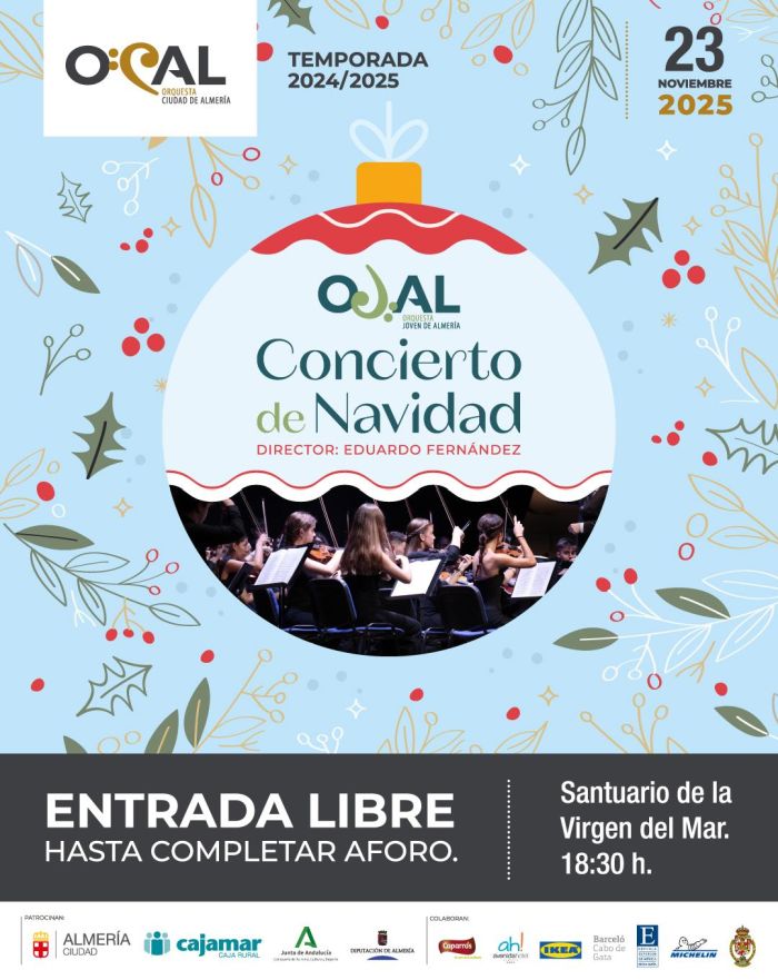 Dirigida por Eduardo Fernández, la OJAL estará el sábado 22 en el encendido navideño del Centro Comercial Torrecárdenas (a partir de las 19.00h) y el domingo 23 en el Santuario Virgen del Mar (18.30h)