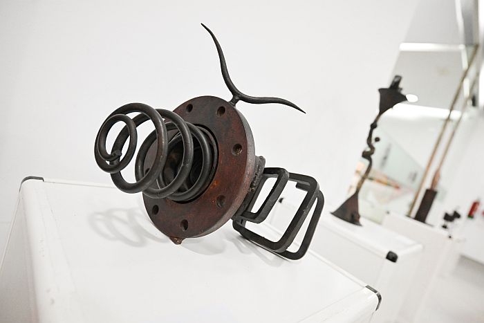 Pérez de la Blanca ha explicado que la exposición se estructura en varias fases que reflejan la transformación del lenguaje escultórico de Avilés. Desde una primera etapa, con obras realizadas con hierro reciclado de gran grosor, trabajadas mediante forja tradicional con carbón, yunque y radial, hasta una última con piezas elaboradas con botellas de gas reutilizadas, trabajadas íntegramente “a pulso”.