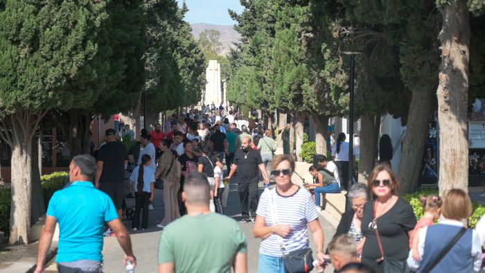 Tal y como manda la tradición, miles de almerienses han acudido este sábado, Día de Todos los Santos, a los cementerios municipales para venerar, acompañar y recordar a sus seres queridos en un ambiente de normalidad, sin grandes aglomeraciones, favorecido por el dispositivo especial puesto en marcha por el Ayuntamiento de Almería para atender el desarrollo de esta jornada. El dispositivo, que finaliza mañana, comenzó el pasado 30 de octubre. Además, de manera excepcional, los camposantos abrieron sus puertas el lunes 27 de octubre, día de la semana que habitualmente permanecen cerrados al público.