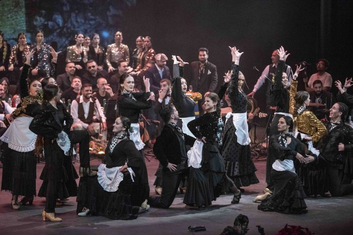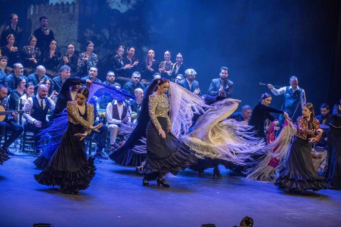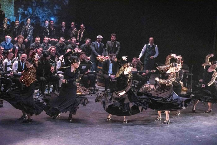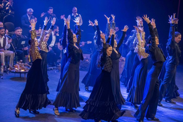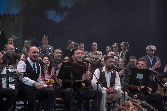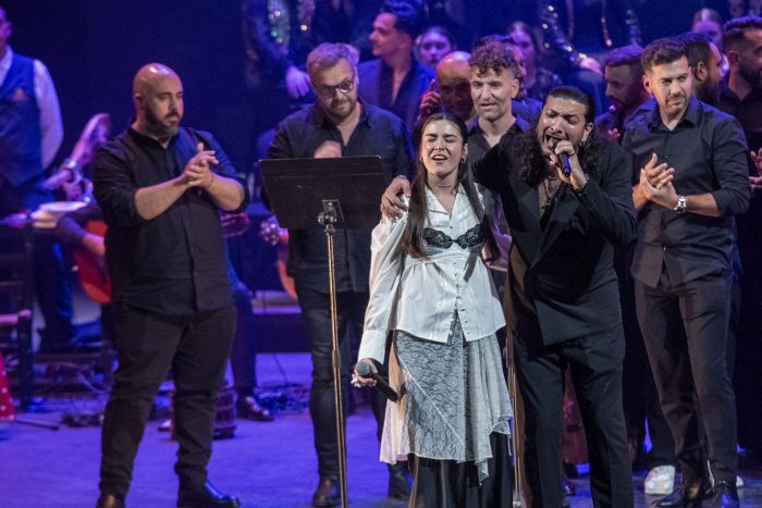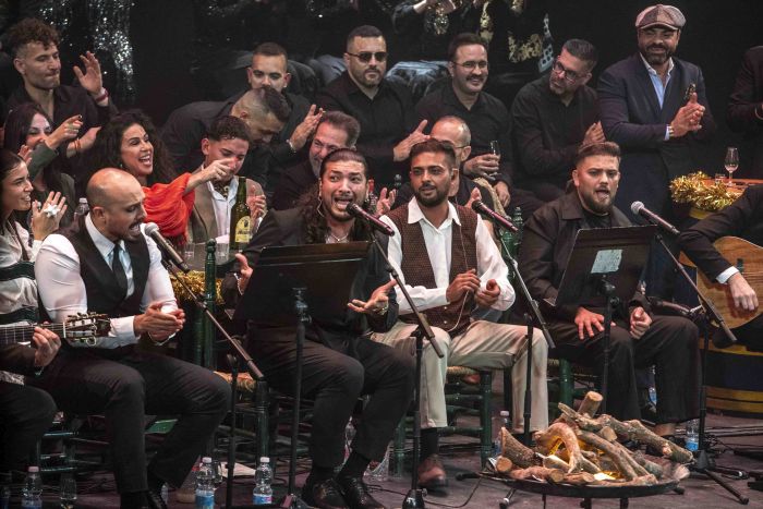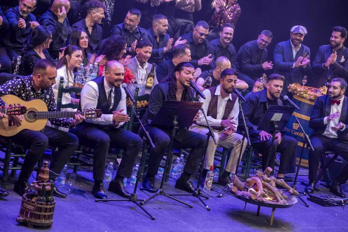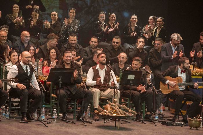 ‘Los Reyes Magos de Oriente’ y ‘Su mirada’ fueron los siguientes temas propios en aparecer, antes de la actuación del grupo de ACAAF, la academia de Inka Díaz, que también mostró apego a la tradición con el cuerpo de baile ataviado con mandiles, bordando tientos y tangos como ‘Camino de Egipto’ o ‘Ven a mi pozo’. Incluso ‘la cantera’ de la guitarra regalaría un tramo instrumental de ‘Los campanilleros’ y otro de los ‘Palillos, zambombas y panderos’ que cantó el público.