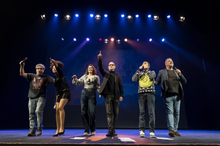 Los ‘Cómicos de Almería’ (propios o adoptados) abrieron anoche el tarro de las esencias del humor de esta tierra y recargaron de buenas vibraciones al público que llenó el Auditorio Maestro Padilla. Los clásicos Pepe Céspedes, Álvaro Vera, Kikín Fernández y Paco Calavera fueron acompañadas por las granadinas Antonia Triviño y Makeba, y el sexteto estuvo especialmente brillante con sus monólogos donde compartieron sus vivencias basadas en la calle, la memoria y la ardua vida laboral. Un espectáculo enmarcado en el programa de Navidad del Área de Cultura del Ayuntamiento de Almería.