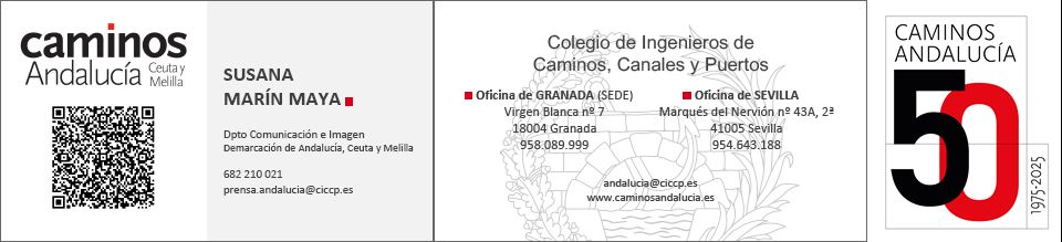 La Demarcación de Andalucía, Ceuta y Melilla del Colegio de Ingenieros de Caminos, Canales y Puertos celebra este 2025 medio siglo de historia haciendo balance y mirando los retos del futuro • En torno a 20.000 empresas de Ingeniería se han creado en la comunidad en estos 50 años. En la actualidad, el 10% de las empresas activas en Andalucía están vinculadas a la Construcción • El Colegio congrega el 2 de octubre en Málaga a 250 colegiados de todas las provincias en una gala conmemorativa, en la que contaremos con la presencia del alcalde Francisco de la Torre, de la consejera y el viceconsejero de Fomento, Articulación del Territorio y Vivienda, del viceconsejero de Sostenibilidad y Medio Ambiente y de la alcaldesa de Granada, entre otras autoridades • Un libro, que se publicará a final de año, y una exposición itinerante, bajo el título ’50 Años – 50 Obras’, homenajearán los hitos históricos de la Ingeniería en Andalucía, Ceuta y Melilla La Demarcación de Andalucía, Ceuta y Melilla del Colegio de Ingenieros de Caminos, Canales y Puertos (CICCP) cumple este 2025 medio siglo de historia y lo hace evaluando la contribución de la profesión al avance de este territorio, su importante peso específico en el PIB regional y revisando los retos a medio y largo plazo. Sólo en los últimos veinticinco años, y aún a pesar de la dura crisis económica vivida desde 2008, los ingenieros de Caminos, Canales y Puertos han gestionado más de 70.000 millones de euros de inversión en obra pública en Andalucía -un 12% del total nacional-. En sus manos está la planificación, proyecto, ejecución y gestión de las obras en carreteras, aeropuertos, puertos, recursos hídricos, costas, en energías renovables, en urbanismo y planificación del territorio, en grandes estructuras, medio ambiente o movilidad, entre otras. El peso económico de la obra civil y las infraestructuras en Andalucía ha sido determinante tanto para la actividad productiva como para la cohesión territorial en Andalucía durante los primeros 25 años del siglo actual. En cuanto a subsectores, las carreteras y el transporte ferroviario concentran gran parte del esfuerzo inversor, seguidos por la gestión del agua (presas, conducciones, depuración y regadíos) y los proyectos portuarios y aeroportuarios. Esta diversificación ha permitido que la obra civil andaluza contribuya no solo al crecimiento económico, sino también a la modernización de la base productiva, al fomento de la movilidad sostenible y a la resiliencia frente al cambio climático.