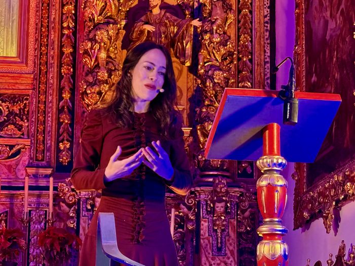 María del Mar Poyatos ahonda en el mensaje de San Juan de la Cruz: “para mí es el mensaje vigente para todo ser humano y es el propósito de vida último: estar en paz y en amor con uno mismo. Los poemas de San Juan de la Cruz reposan en la dulzura y nos transmiten cuál es el camino de la paz. Estar en brazos del amado, quitarse las máscaras que nos distraen de lo que realmente es la vida. Es como yo lo vivo y me gusta transmitirlo. Un mensaje eterno y necesario”.
