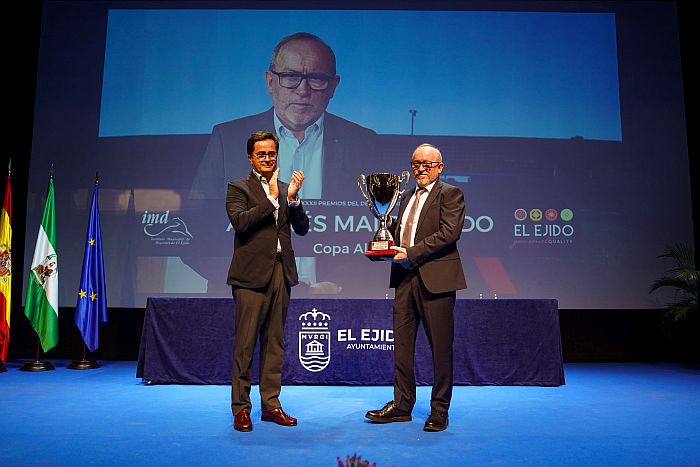 9-         Copa Alcalde: Andrés Maldonado, CEO y fundador de Almería 24 horas, además de director de Aprin Group, con Radio Poniente, entre otras CEO por su gran aportación a la difusión y promoción del deporte ejidense durante décadas.
