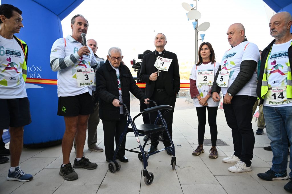 En la salida se encontraba el obispo de Almería, Antonio Gómez Cantero, los concejales Antonio Casimiro y Sacra Sanchez, el vicerrector de Sostenibilidad, Salud y Deportes de la UAL, Gabriel Aguilera, y el propio Jesús Peregrín, que a sus 99 años sigue impulsando los proyectos de la fundación.