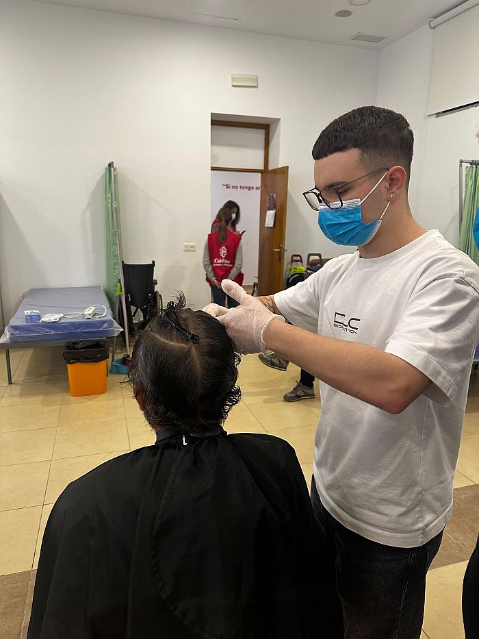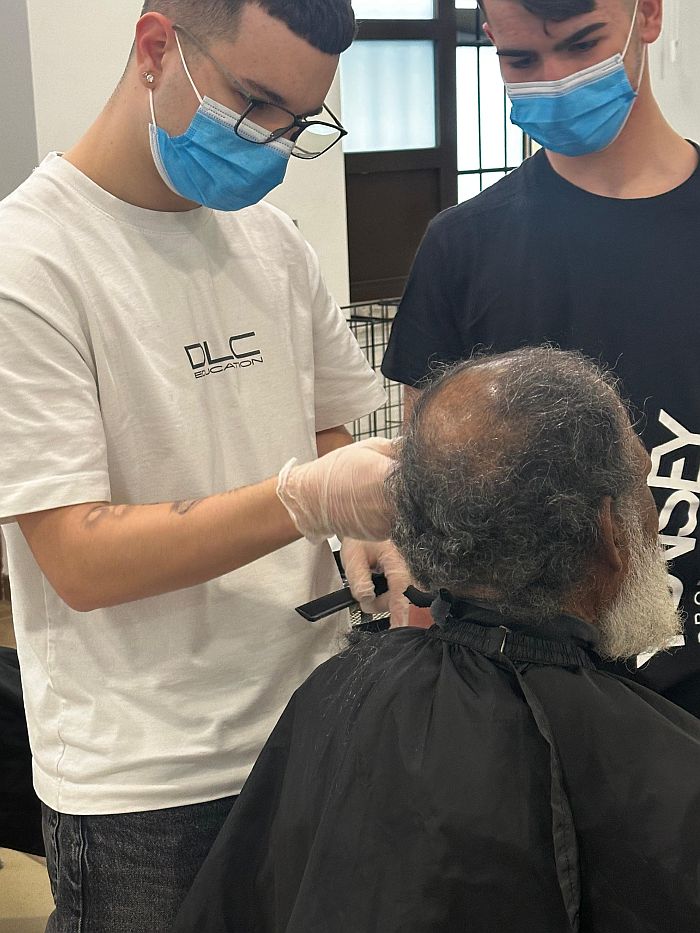 Desde la academia también subrayan el valor educativo de la experiencia. Samuel, monitor de la academia, lo explica así: “Para nosotros es un placer estar aquí. No enseñamos solo a cortar el pelo, también trabajamos valores como el respeto, la responsabilidad o el compromiso. Vivir algo así les ayuda a valorar más lo que tienen y a entender mejor la realidad de otras personas. Es aprendizaje para la vida”.