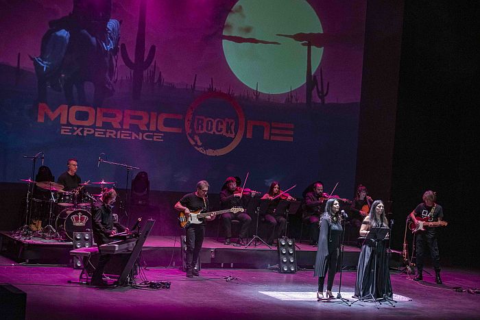 No había mejor ciudad que Almería para el estreno mundial del concierto Morricone Rock Experience. Lo más granado del repertorio del compositor italiano, que entró en la historia del cine dando música a la trilogía del dólar de Sergio Leone, tan vinculada a la provincia almeriense, revivió ayer con toda la plenitud de su elegancia, belleza y épica, con el añadido enérgico del rock, en el Auditorio Municipal Maestro Padilla. Se trata de un espectáculo de producción española, a cargo de DGB Producciones, y creado en Italia, enmarcado en la programación trimestral puesta en marcha desde el Área de Cultura, Educación y Tradiciones del Ayuntamiento de Almería.