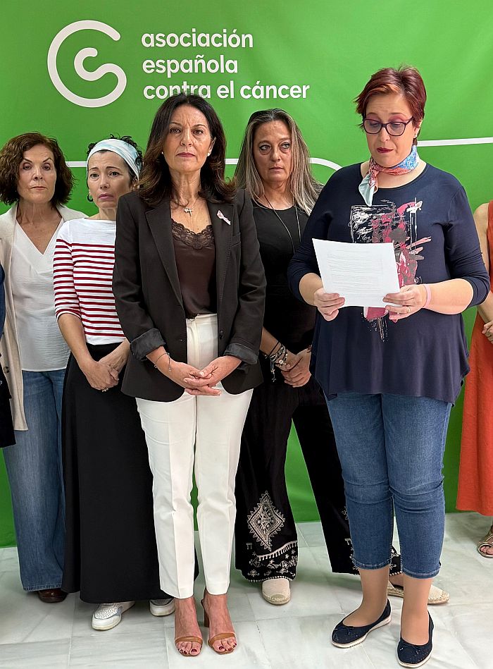 Una de las pacientes ha leído el Manifiesto de la Asociación Española Contra el Cáncer donde, tras la ‘crisis de la mamografías’, se han incluido las reivindicaciones que la propia presidenta, Magdalena Cantero, en su calidad de representante en Andalucía de la Asociación, le ha expuesto en una reunión al presidente de la Junta de Andalucía, Juan Manuel Moreno.
