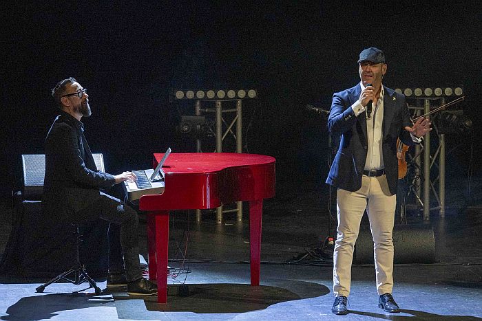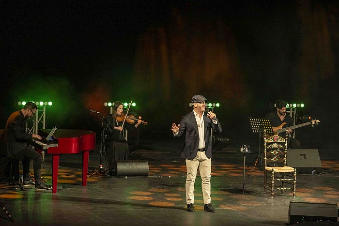 Paco Candela desplegó sobre el escenario su inconfundible forma de cantar: una mezcla de sentimiento, verdad y fuerza que trasciende géneros. Su voz, profundamente arraigada en el flamenco y la música popular andaluza, se movió con naturalidad entre baladas, fandangos, rumbas y sevillanas, siempre acompañada por un sólido elenco de músicos que aportaron riqueza y matices a cada interpretación. Lejos de limitarse a interpretar canciones, el artista narra, emociona y comparte, logrando que cada espectador se sienta parte del espectáculo.
