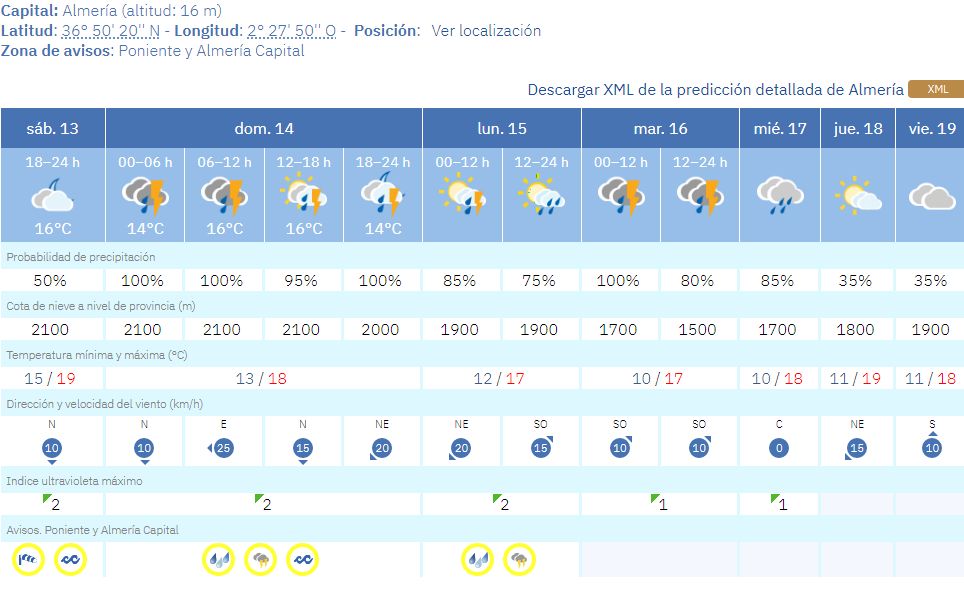 Descargar XML de la predicción detallada de Almería