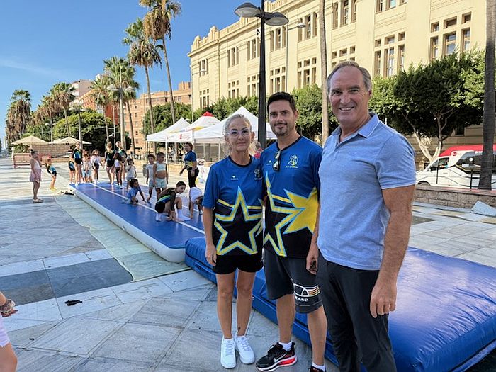 Antes, el concejal ha visitado la exhibición y actividad de acercamiento de la agrupación deportiva La Salle al público en el Mirador de la Rambla, con un circuito de habilidades gimnásticas. Ahí el concejal ha sido recibido por el coordinador, Antonio Yagüe. En la Plaza de las Velas, Torneo 3×3 de Baloncesto de la mano de la Delegación Provincial de la Federación de Baloncesto y su delegado, José Cara.