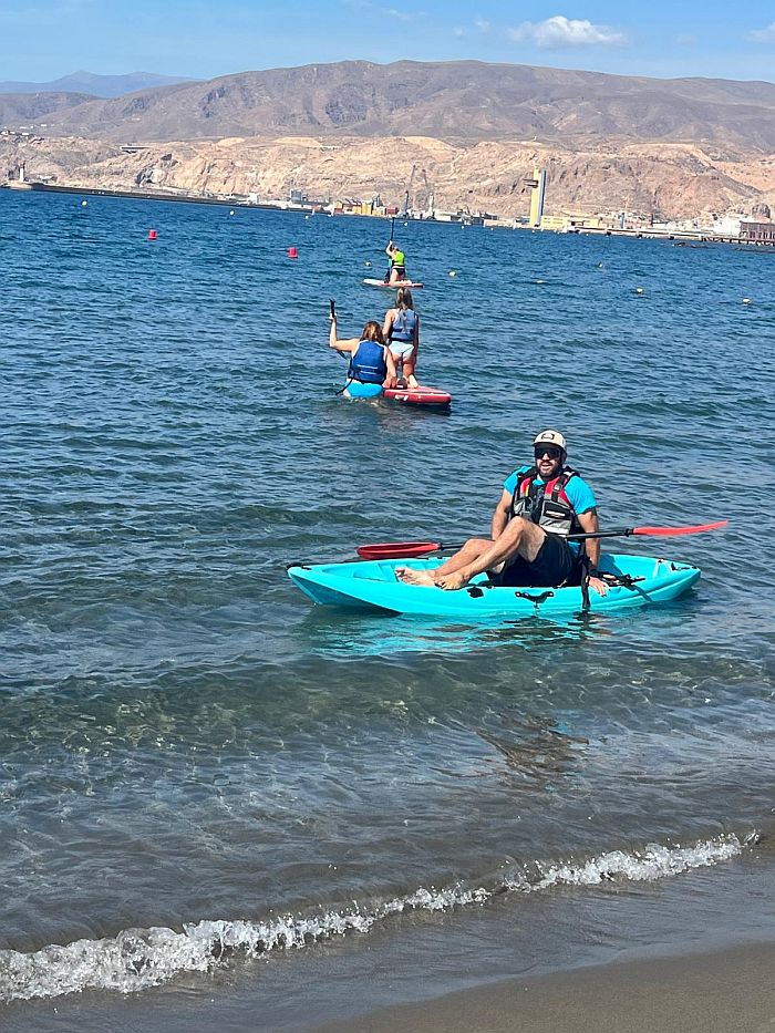 También El Palmeral estaba repleto de actividades, donde sobresale kayak inclusivo con Altea. Más de 350 deportistas de toda España han participado esta mañana en el G-Race, uniendo fuerza, resistencia y elasticidad. En El Toyo, el XII Torneo de Ajedrez Memorial Juan Martínez Sola.