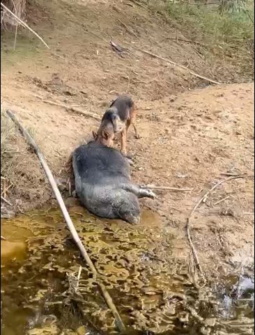 El animal apareció flotando con las patas atadas con cuerdas. Vecinos nos aseguran que hace aproximadamente una semana, alguien parece haberlo sacado del agua, retirado las cuerdas y dejándolo en la orilla. Actualmente, nos informan de que perros abandonados han comenzado a alimentarse de este animal, ya en estado de descomposición, en la orilla.