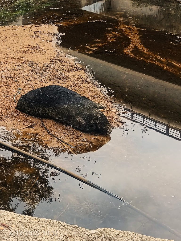 Desde Andalucía Por Sí – Andalucistas Huelva queremos denunciar que lo que parece ser un cerdo vietnamita lleva muerto aproximadamente más de diez días en la orilla del Arroyo de la Nicoba, en el camino–cañada de San Juan del Puerto a Gibraleón, a escasos doscientos metros de las placas solares de la Planta Fotovoltaica de Huelva.