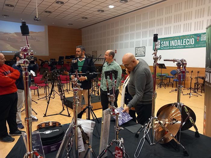 Junto al responsable de Cultura de la Junta en Almería han estado en el recorrido por las instalaciones la presidenta de la Agrupación Musical, María del Mar de Haro; el director de la Banda Sinfónica, Manuel Horcas Cerezo; los miembros de la Junta Directiva, Daniel Romero, Basilio Espín y José F. López, así como los profesores de percusión, Ángel Pérez y Fausto Ruiz.