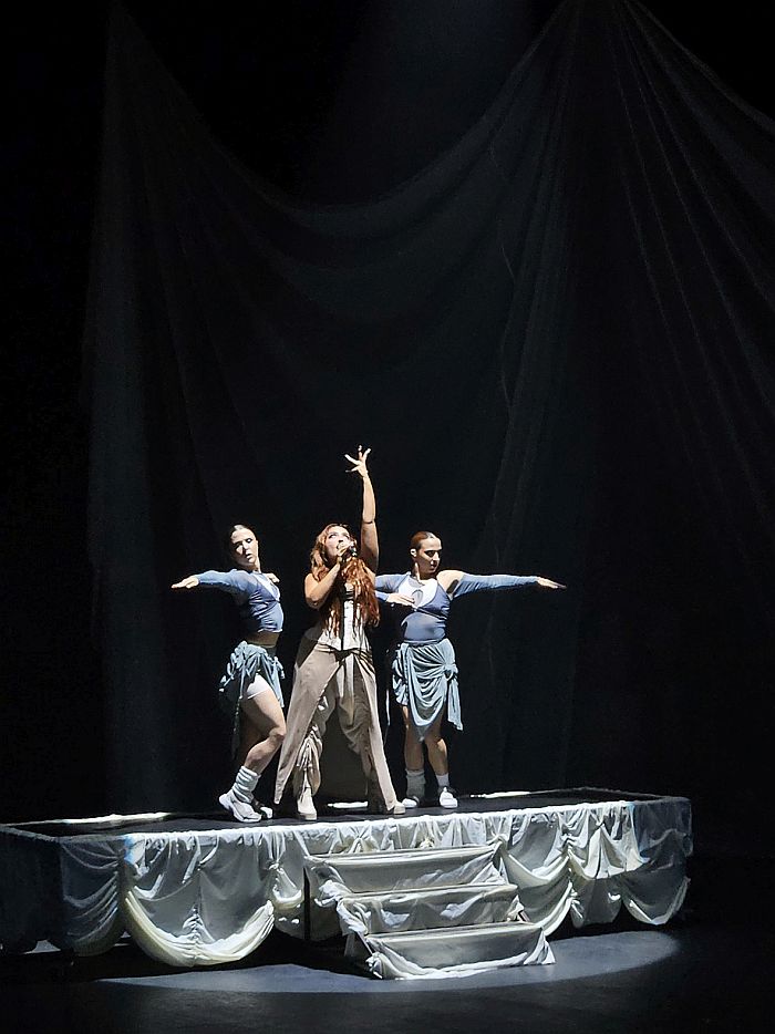 Dividido en tres actos, como la ópera, Violeta piso con fuerza las tablas del Auditorio sabiendo que el respaldo de su nutrida colección de seguidores es ya incondicional. Tras la obertura situacional llegaría el desarrollo de ‘la obra completa’. Una escenografía presidida por la seda y el tul blanco, sencilla pero muy efectiva y efectista según la teatralidad de cada canción, y un vestuario de época pero de corte actual lograban la ambientación precisa.