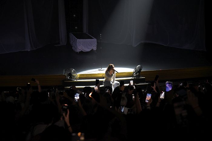 Los móviles en alto y la devoción del público por su diva seguían marcando el norte de una actuación que redondeó el sentido la obra con su tercer acto, arrancado también con una deliciosa versión de ‘Les Feuilles Mortes’ de Yves Montand o el caluroso bolero canónico –hasta en la referencia al “pájaro cantor”- de ‘Sabor de anhelo’, interpretado en un camastro y cambiando el vestuario al negro solemne.