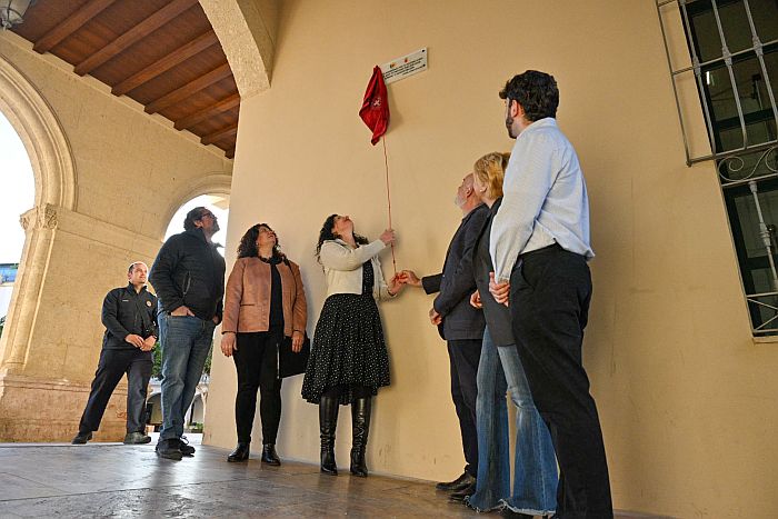 La alcaldesa y miembros de la Junta Directiva de la Hermandad de la Soledad descubren esta insignia, elaborada en mármol blanco de Macael, que rememora la noche del Viernes Santo de 2002 La alcaldesa de Almería, María del Mar Vázquez, y miembr...